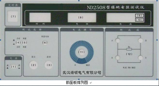 (11)“測(cè)試電流”調(diào)節(jié):調(diào)此調(diào)壓器來(lái)調(diào)節(jié)輸出電壓,從而調(diào)節(jié)負(fù)載中的測(cè)試電流至規(guī)定值。