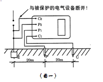 沿被測接地極E(C2、P2)和電位探針P1及電流探針C1,依直線彼此相距20米,使電位探針處于E、C中間位置,按要求將探針插入大地。