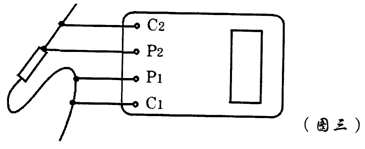 · 用專用導(dǎo)線將地阻儀端子E(C2、P2)、P1、C1與探針?biāo)谖恢脤?yīng)連接。