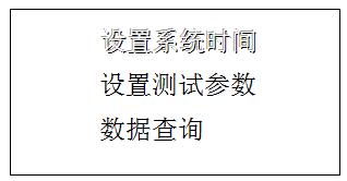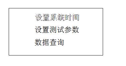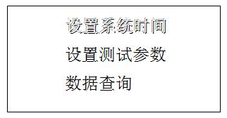 2.1.1、開機LOGO,按【菜單】鍵進(jìn)入主菜單。主菜單有三個選項:“設(shè)置系統(tǒng)時間”“設(shè)置測試參數(shù)”和“數(shù)據(jù)管理”。