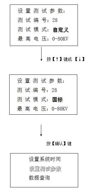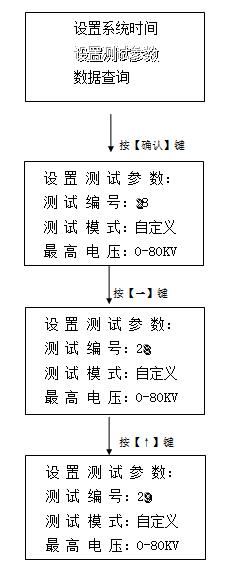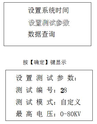 2.3.2、按【↑】鍵和【↓】鍵移動陰影光標(biāo)到“設(shè)置測試參數(shù)”,再按【確認(rèn)】鍵進(jìn)入?yún)?shù)設(shè)置界面。