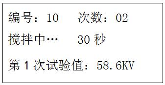 4.1.4、等待時間300秒倒計時完畢,LCD顯示攪拌界面,儀器自動對油樣進(jìn)行攪拌;