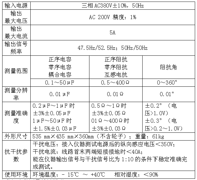 本儀器能夠準(zhǔn)確測(cè)量各種高壓輸電線線路(架空、電纜、架空電纜混合、同桿多回架設(shè)的工頻參數(shù)(正序電容、零序電容、正序阻抗、零序阻抗、互感和耦合電容、相間電容等)。