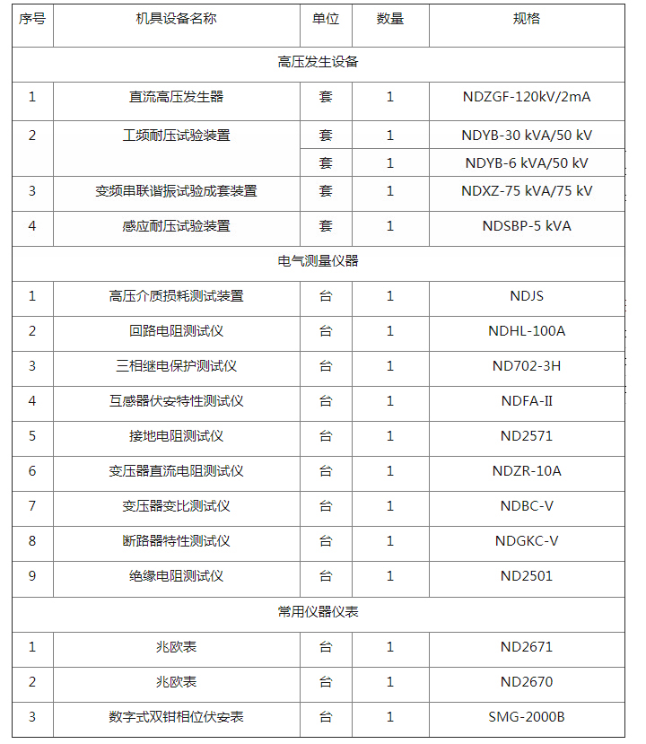 2017年12月1日,國(guó)家能源局對(duì)電力承試類資質(zhì)設(shè)備進(jìn)行了相應(yīng)的調(diào)整,各個(gè)省的承試類資質(zhì)設(shè)備都相同,同時(shí)減去了一些電力企業(yè)在實(shí)際工作中并不常用到的設(shè)備,武漢諾頓電氣在本文就簡(jiǎn)單介紹新版的承裝(修、試)承試類五級(jí)電力設(shè)施許可證所需施工機(jī)具設(shè)備選型指南。