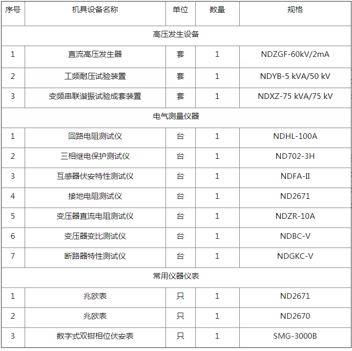 承裝(修、試)承試類五級電力設(shè)施許可證所需施工機(jī)具設(shè)備選型如下: