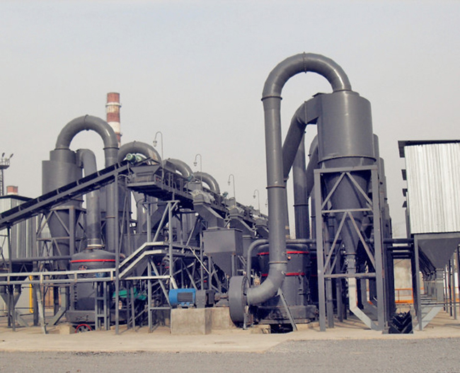 大塊膩?zhàn)臃畚锪辖?jīng)顎式破碎機(jī)破碎后,由斗式提升機(jī)送至儲料倉,通過電磁振動給料機(jī)均勻連續(xù)地送入磨粉機(jī)主機(jī)內(nèi)研磨,研磨后的粉末在鼓風(fēng)機(jī)的作用下吹向選粉機(jī)進(jìn)行分選。符合細(xì)度的非金屬礦粉由管道輸送到儲料倉;不合格的粒子重回磨粉機(jī)內(nèi)研磨。整個系統(tǒng)在負(fù)壓狀態(tài)下運(yùn)行,粉塵不外溢,從而保護(hù)了周邊環(huán)境。若經(jīng)脈沖除塵器過濾,環(huán)保效果佳。